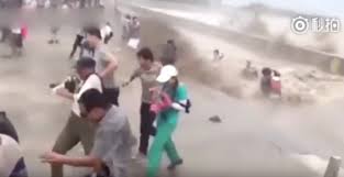 На востоке Китая в провинции Чжэцзян приливная волна на реке Цяньтан накрыла несколько десятков человек на набережной. Видео опубликовал канал People»s Daily. Жители Китая ежегодно приезжают на берега реки, чтобы полюбоваться «Лучшим приливом Поднебесной». Волны достигают 9 метров в высоту и наблюдать за ними с близкого расстояния крайне опасно