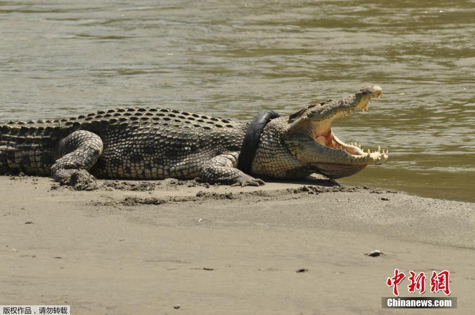 В индонезийском Палу внимание публики привлек крокодил, всплывший с мотоциклетной шиной на шее. Возможно крокодил думал, что люди помогут ему снять это «ожерелье», но никто из присутствующих так и не решился приблизится к пресмыкающемуся.