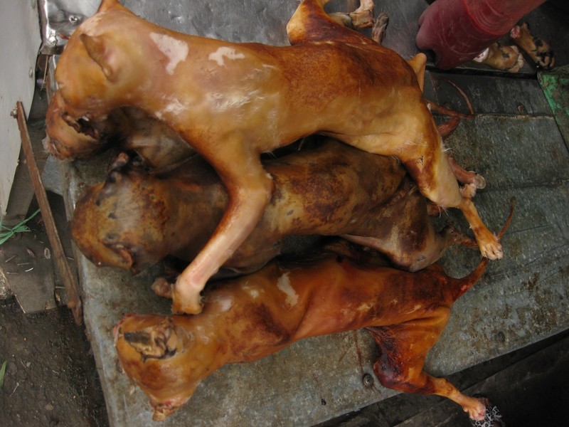 Пара наших туристов заглянула на местный рынок в деревушке на севере Вьетнама. Вид предлагаемых яств настолько поразил, что непривычные к такой экзотики люди немедленно потянулись на выход, сделав на память о местной кухне пару кадров товаров предлагаемых на продажу.